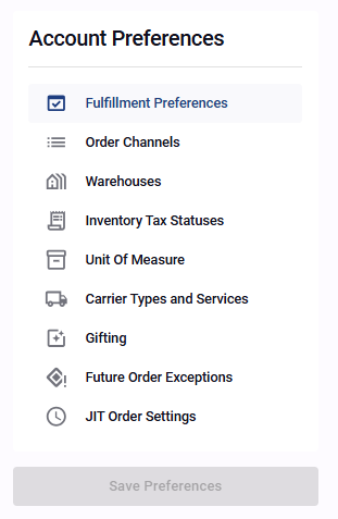 The Account Preferences page allows the Admin user in the company to manage ACP account preferences to customize the available options to eliminate the items that are not applicable to your business practices.