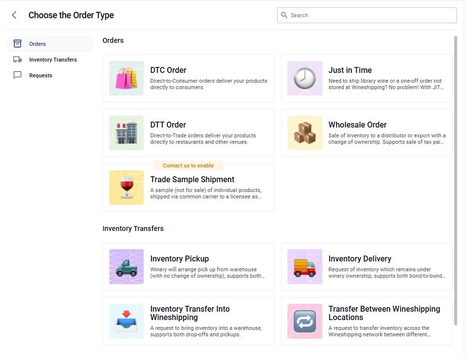This guide will cover how to create an Inventory Delivery order. Identify the inventory you would like Wineshipping to deliver.