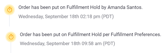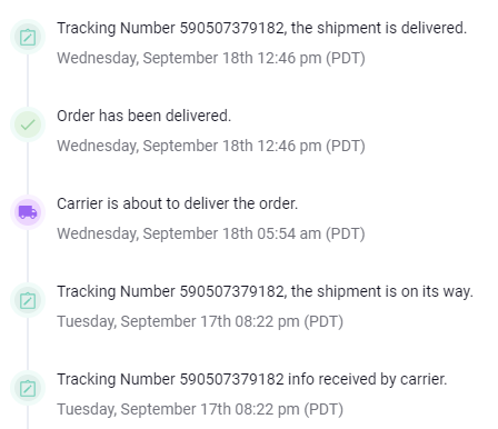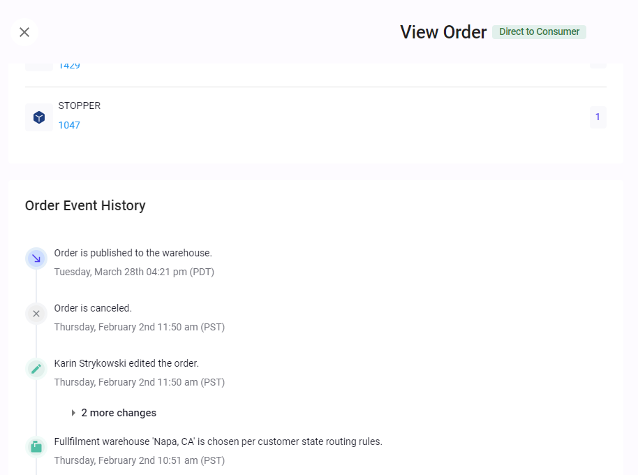 To access the order history details click on the order number to open the order details and scroll to the bottom to view the order event history. The events will be organized by the most recent to oldest event.