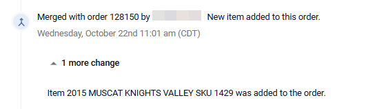 This appears when you’ve successfully merged two orders, transferring the SKU(s) from one order into the main order you selected.