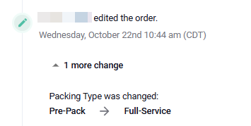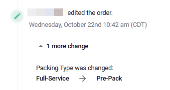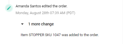 Any edits to the order will be indicated in the history outlining what was edited and who did it.