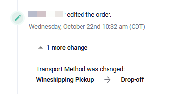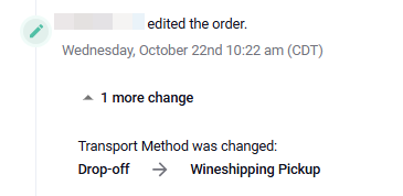 The transport method for Just in Time has been changed from Drop-Off to Wineshipping Pickup or vice versa. This is only applicable to Just in Time orders.