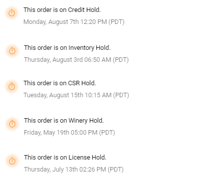 Winery Hold - Indicates the D365 weather holds. This is separate from the ACP weather holds.