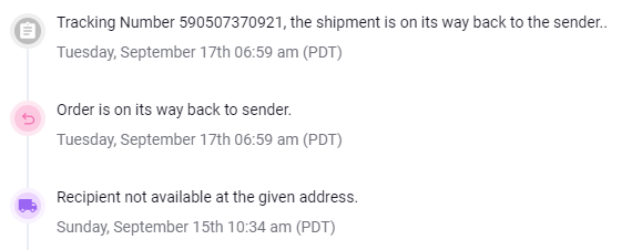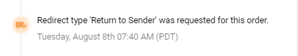 The package has been returned to the sender either by redirect request, three failed attempts, or carrier directed.