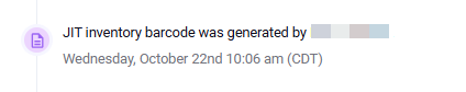 This logs when an ACP user generates a JIT Inventory barcode. This is only applicable to Just in Time orders.