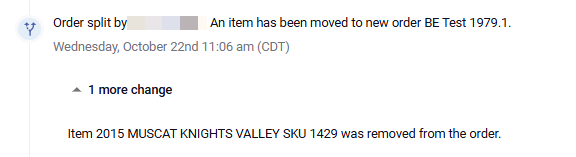 This log appears when line item(s) from one order have been successfully split into a new, separate order.