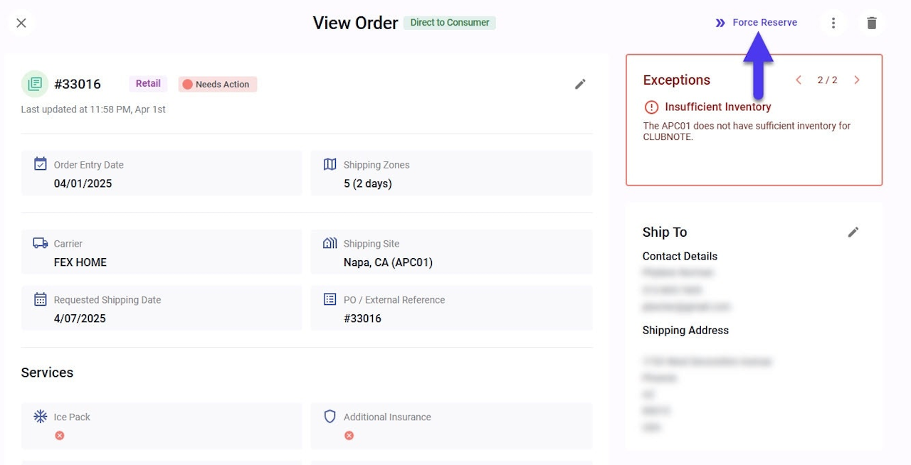 Inventory Reservations – Force Reserve