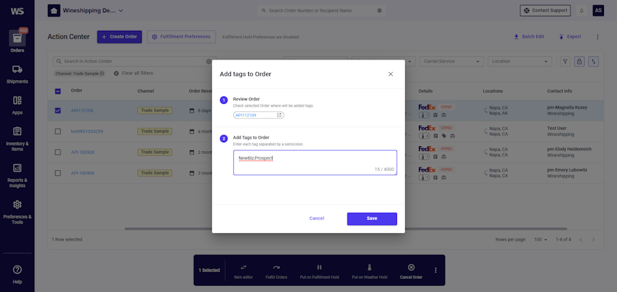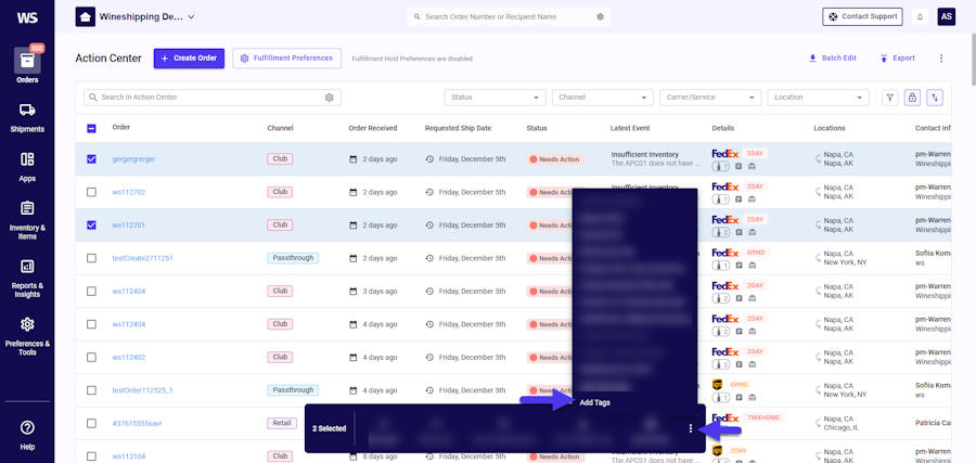 Adding tags to orders just got so much easier! You can now select multiple orders in the Action Center or Open Orders views and bulk add tags directly in ACP.