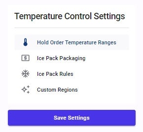 Custom Regions enabled: Manage states that contain varying temperatures (CA, NV, AZ, NY) by enabling the custom regions to be more granular about temperature shipping. Enable all Custom Regions to work in conjunction with Temperature Ranges